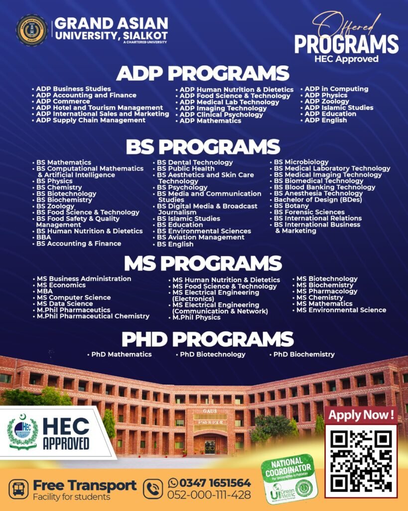 🎓 Grand Asian University, Sialkot – Admissions Open!